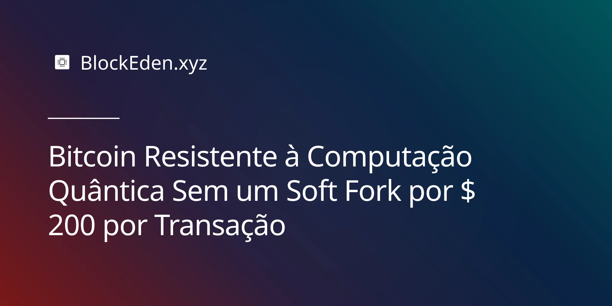 E se você pudesse tornar o seu Bitcoin resistente à computação quântica hoje — sem hard fork, sem soft fork, sem esperar sete anos por um consenso de governança — desde que estivesse disposto a pagar cerca de $ 200 por transação?