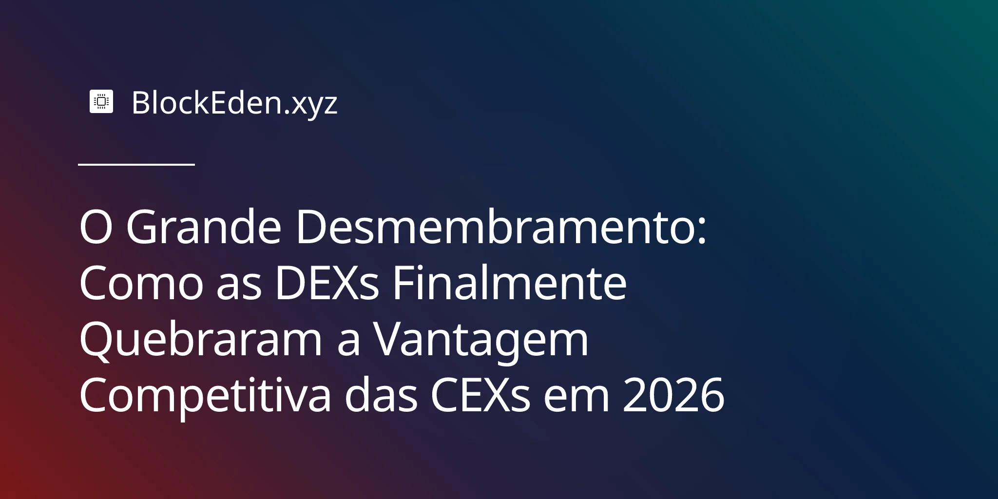 Durante a maior parte da história das criptomoedas, "DEX vs. CEX" era um experimento mental que terminava da mesma forma: as CEXs detêm a liquidez, o varejo quer um aplicativo limpo e as instituições exigem trilhos de moeda fiduciária (fiat rails). DeFi era para os ideólogos. Em 2026, esse argumento não é mais acadêmico. O desmembramento estrutural da exchange centralizada está em andamento — e está sendo impulsionado por três forças que finalmente chegaram juntas: carteiras com abstração de cadeia (chain-abstracted wallets), execução baseada em intenção (intent-based execution) e uma profundidade de liquidez on-chain que rivaliza com as CEXs de nível médio.