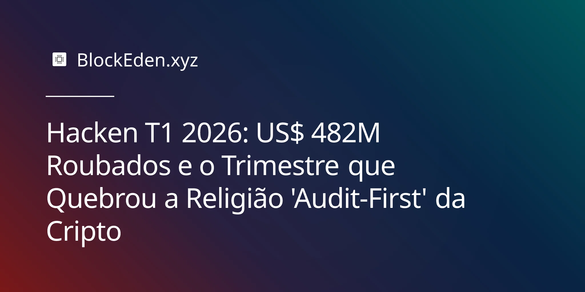 Hacken T1 2026: US$ 482M Roubados e o Trimestre que Quebrou a Religião 'Audit-First' da Cripto