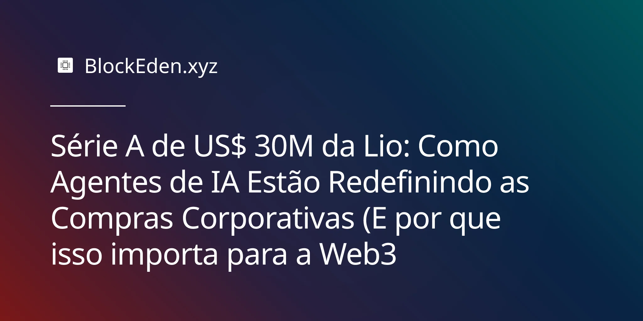O aporte de US$ 30 milhões da Lio confirma que 2026 pertence aos agentes de IA na gestão de compras. Mas a história não termina aí. À medida que as economias de agentes ganham escala, elas precisarão da infraestrutura Web3 para identidade, pagamentos e coordenação programável.