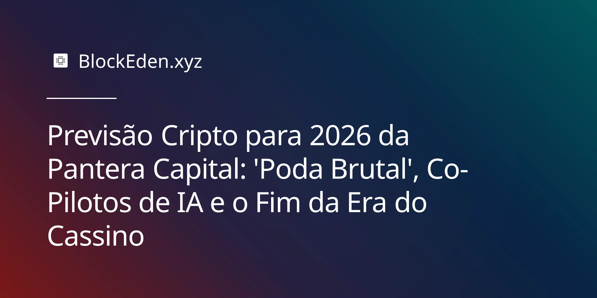 Estes não são problemas que a Pantera afirma resolver. Mas reconhecê-los coloca as previsões otimistas em um contexto útil: mesmo o investidor institucional mais otimista do setor reconhece que o crescimento de 2026 pode fluir para o equity em vez de tokens.
