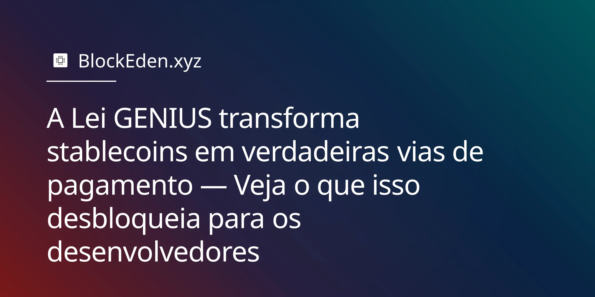 Stablecoins dos EUA acabaram de sair de uma zona cinzenta jurídica para se tornarem instrumentos de pagamento regulados federalmente. A nova Lei GENIUS estabelece um conjunto abrangente de regras para emissão, lastro, resgate e supervisão de stablecoins atreladas ao USD. Essa clareza recém‑adquirida não sufoca a inovação — padroniza os pressupostos centrais sobre os quais desenvolvedores e empresas podem construir com segurança, desbloqueando a próxima onda de infraestrutura financeira.