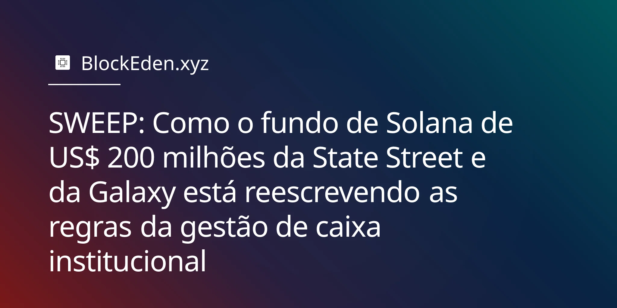 A State Street, custodiante por trás de US44,3trilho~esemativos,eaGalaxyDigital,umadaspontesinstitucionaismaisproeminentesdosetorcripto,uniramforc\cas.Suacriac\ca~o—oStateStreetGalaxyOnchainLiquiditySweepFund(SWEEP)—contacomumcompromissodecapitalsementedeUS 200 milhões da Ondo Finance e foi projetada para trazer liquidez semelhante à de caixa, 24 horas por dia, 7 dias por semana, para investidores institucionais qualificados diretamente na Solana.