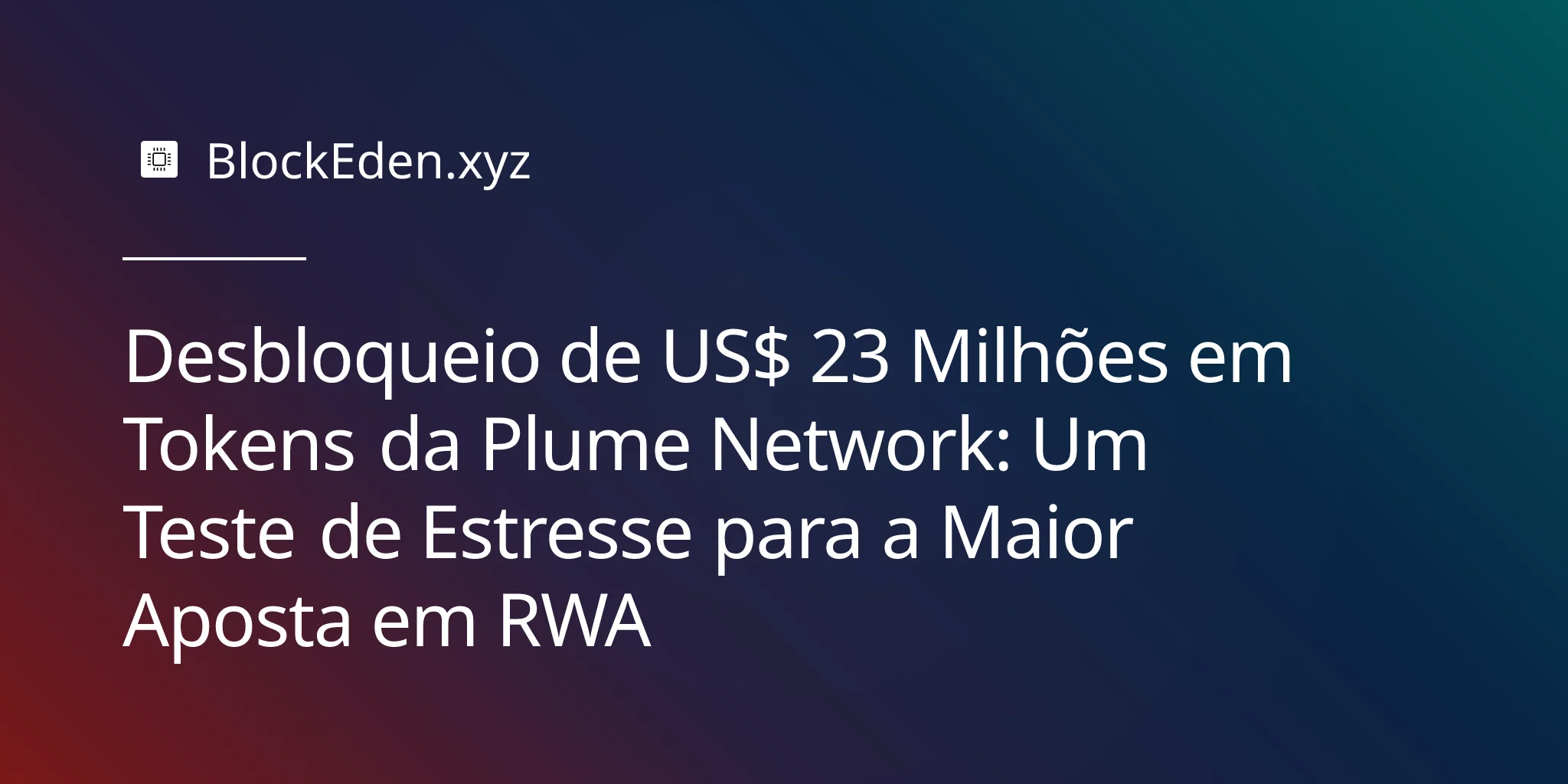 Em dois dias, 1,37 bilhão de tokens PLUME no valor de US$ 23 milhões inundarão o mercado — representando 40% do fornecimento circulante atual. Para a maioria dos projetos de cripto, isso significaria um desastre. Mas para a Plume Network, a Layer 1 focada em RWA que controla metade de todos os detentores de ativos do mundo real em cripto, isso está se configurando para ser o momento decisivo para saber se as finanças tokenizadas podem resistir à volatilidade de nível institucional.