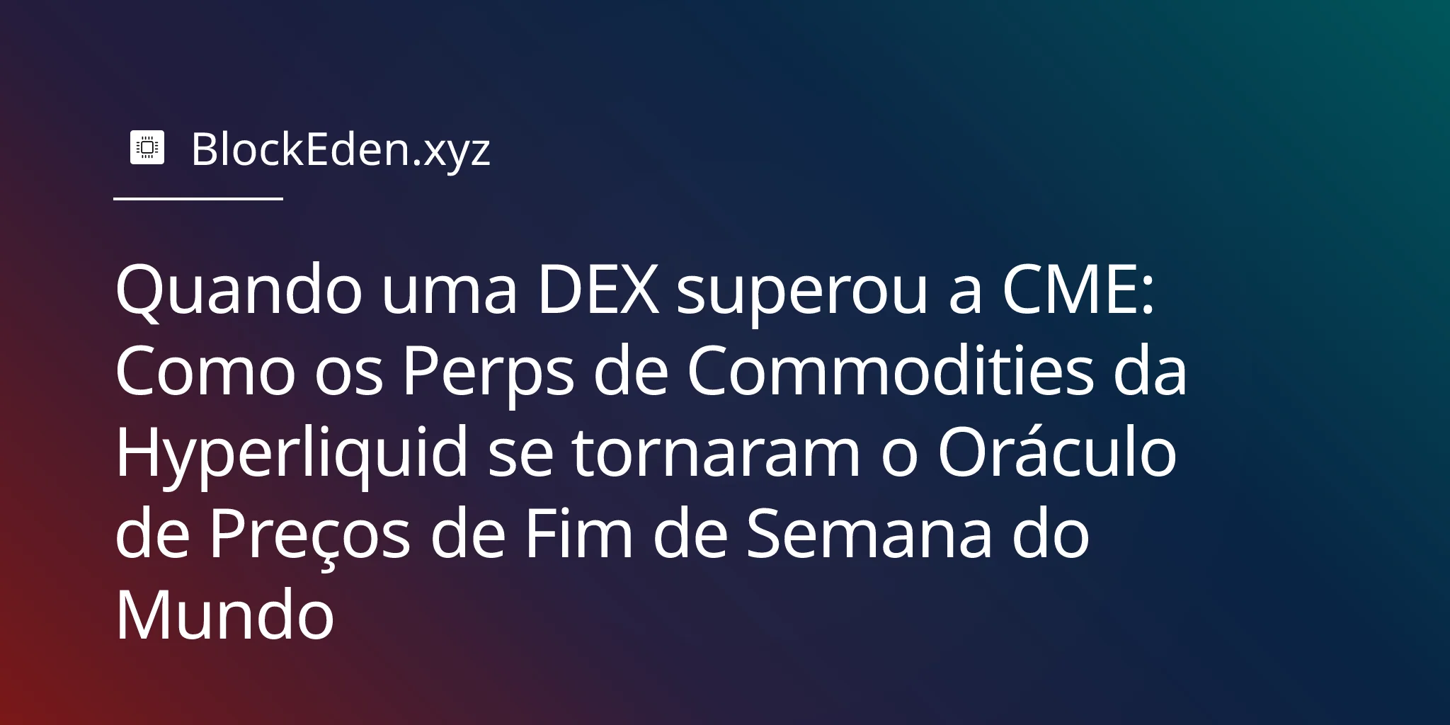 No sábado, 28 de fevereiro de 2026, ataques de mísseis coordenados dos EUA e de Israel atingiram instalações nucleares iranianas. As bolsas de commodities tradicionais — CME, NYMEX, ICE — estavam fechadas. Fechadas para o fim de semana. Mas na Hyperliquid, uma exchange descentralizada de futuros perpétuos, os contratos de petróleo saltaram 5 % em poucos minutos. No momento em que os traders de Wall Street retornaram às suas mesas na manhã de segunda-feira, a Hyperliquid já havia precificado a crise — e o gap entre o seu fechamento de fim de semana e a abertura da CME na segunda-feira contou uma história que as finanças tradicionais não podiam mais ignorar.