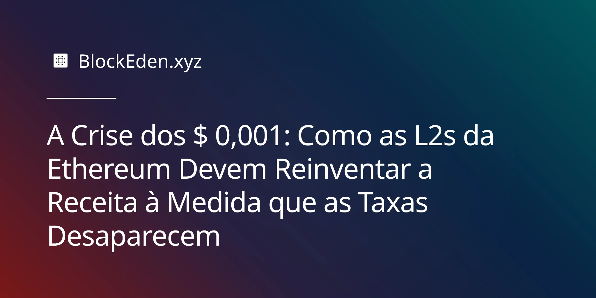As taxas de transação nas redes de Camada 2 do Ethereum caíram para apenas $ 0,001 — um triunfo para os usuários, mas uma crise existencial para as próprias blockchains. Enquanto Base, Arbitrum e Optimism correm em direção a custos próximos de zero, a questão fundamental que assombra todo operador de L2 torna-se inevitável: como sustentar uma infraestrutura de bilhões de dólares quando seu principal fluxo de receita está se aproximando de zero?