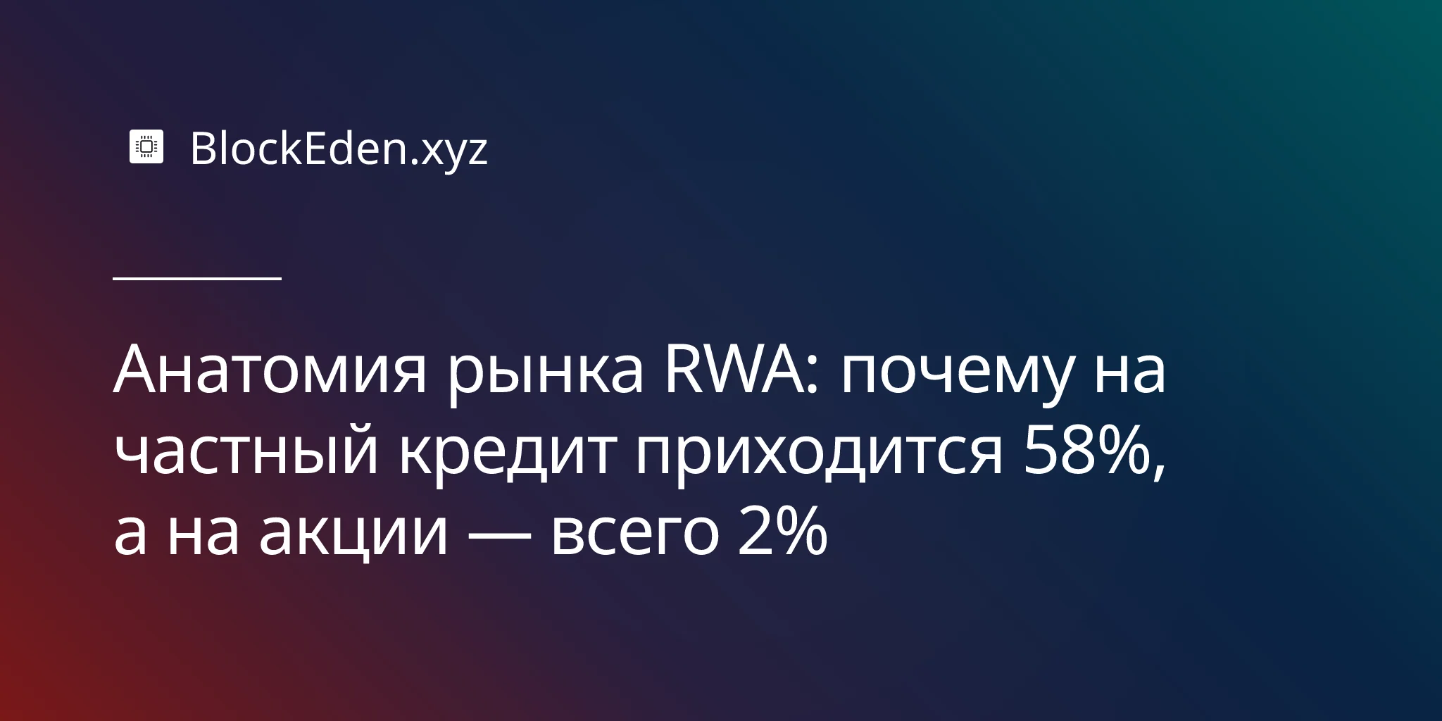 Анатомия рынка RWA: почему на частный кредит приходится 58%, а на акции — всего 2%