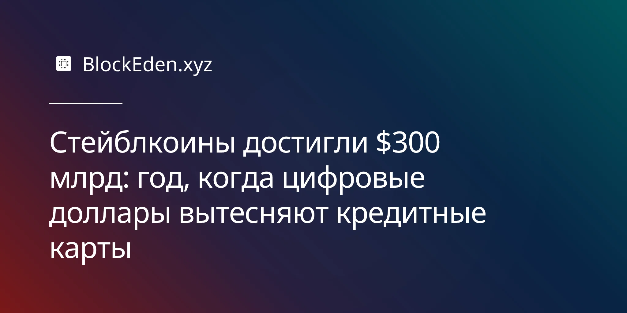 Стейблкоины достигли $300 млрд: год, когда цифровые доллары вытесняют кредитные карты