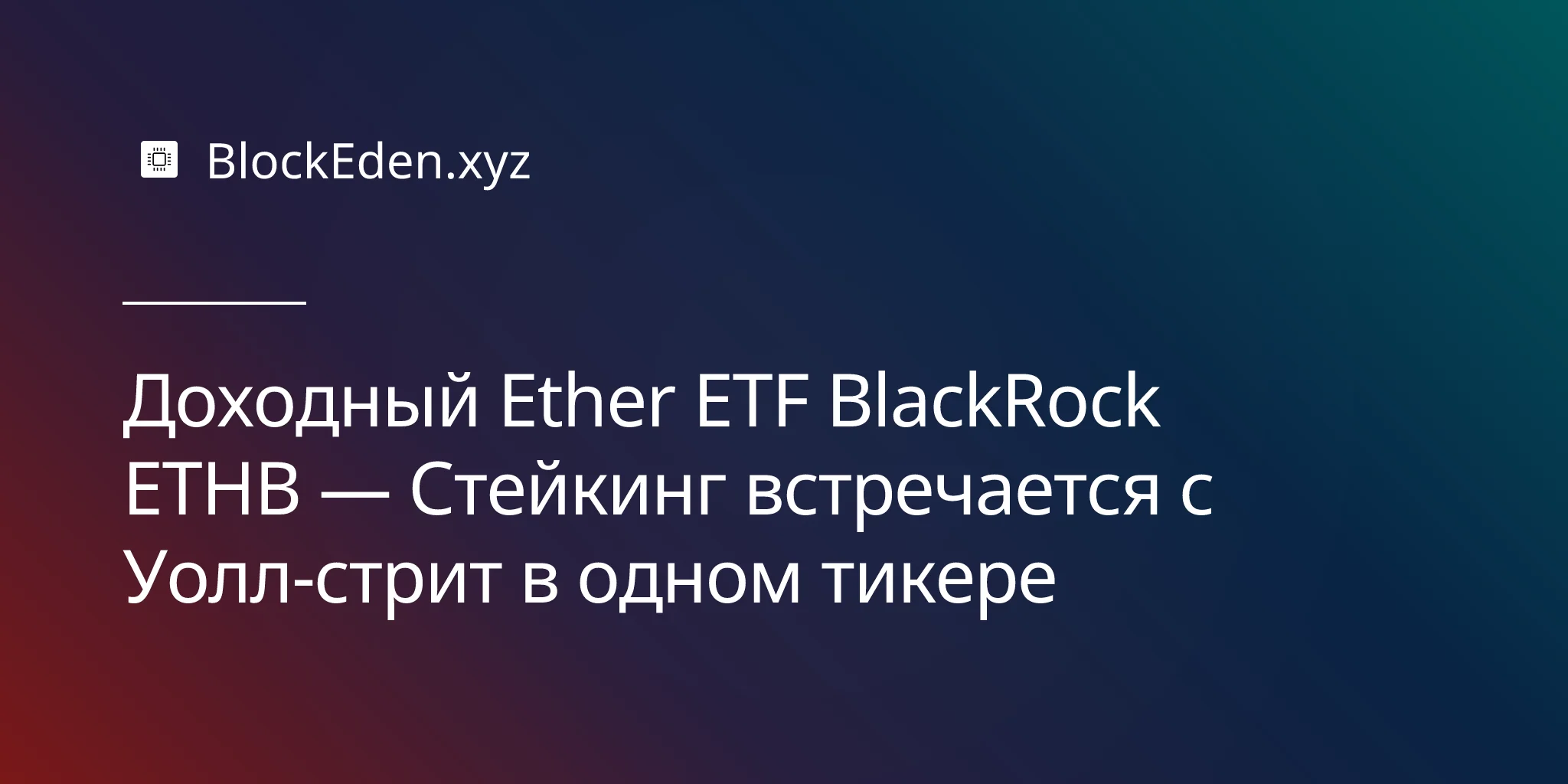 Доходный Ether ETF BlackRock ETHB — Стейкинг встречается с Уолл-стрит в одном тикере