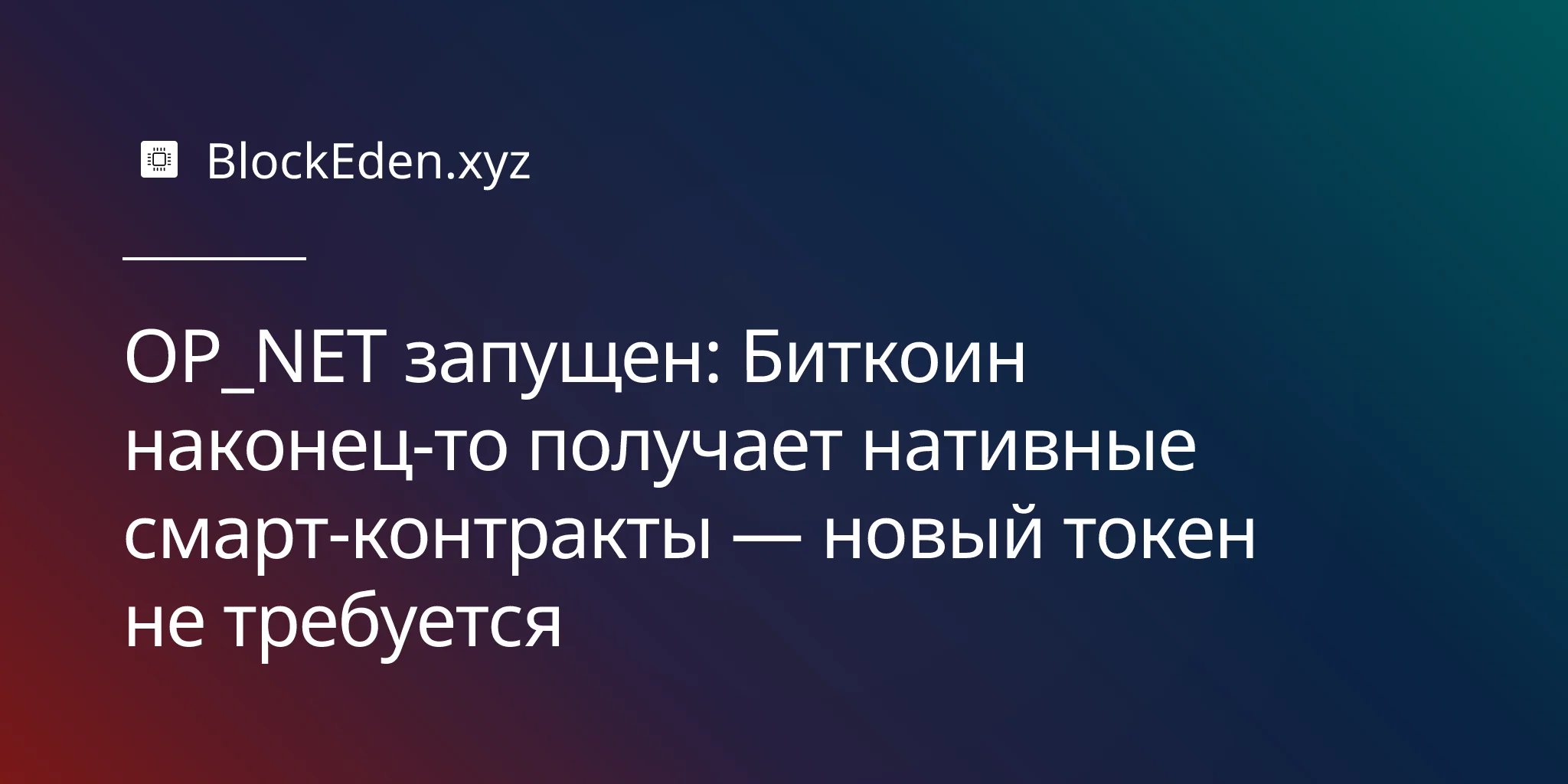OP_NET запущен: Биткоин наконец-то получает нативные смарт-контракты — новый токен не требуется