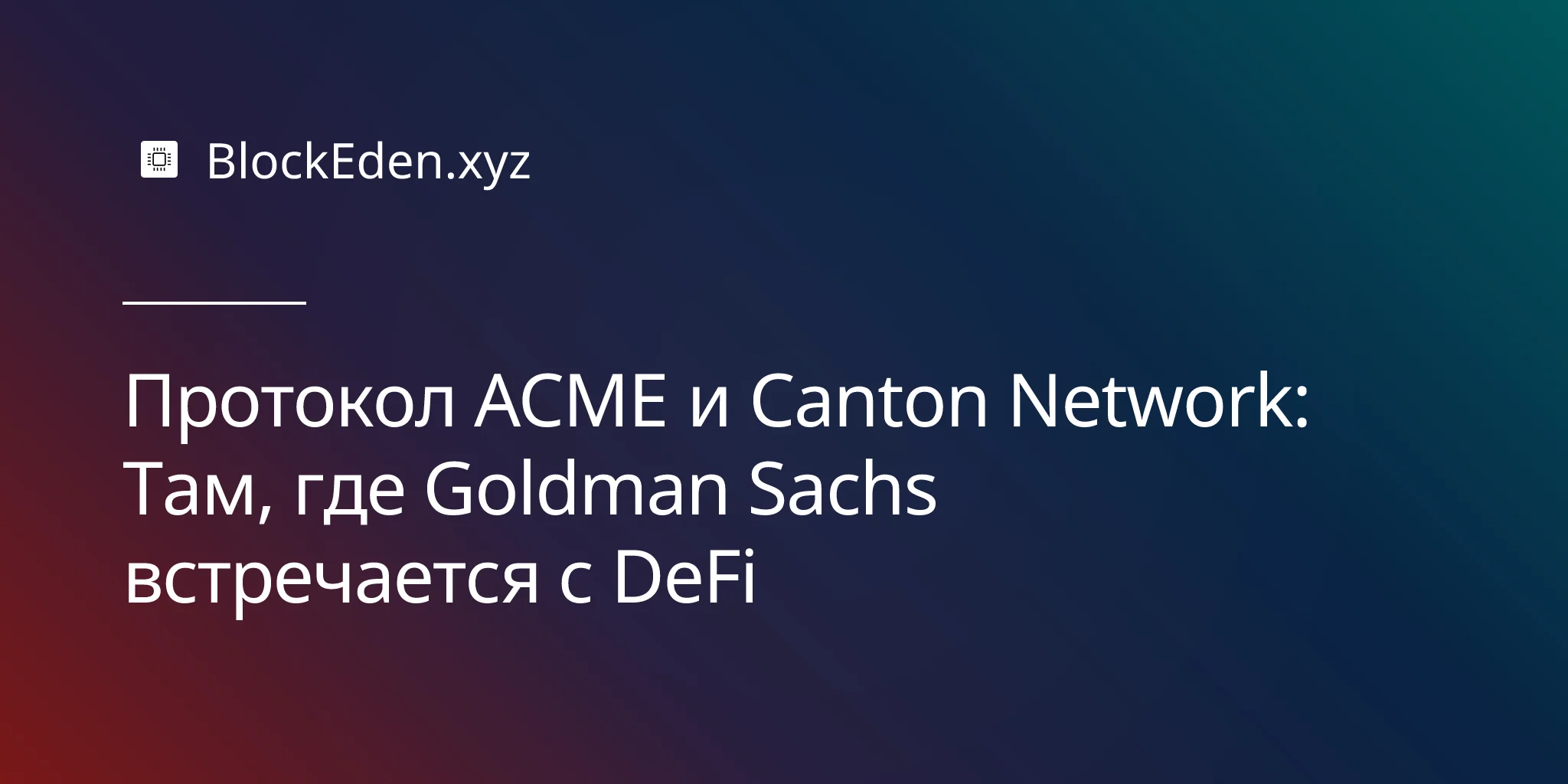Протокол ACME и Canton Network: Там, где Goldman Sachs встречается с DeFi