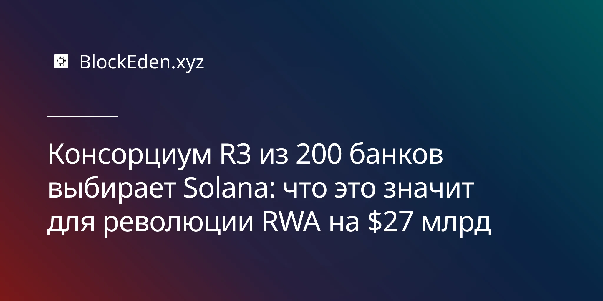 Консорциум R3 из 200 банков выбирает Solana: что это значит для революции RWA на $27 млрд