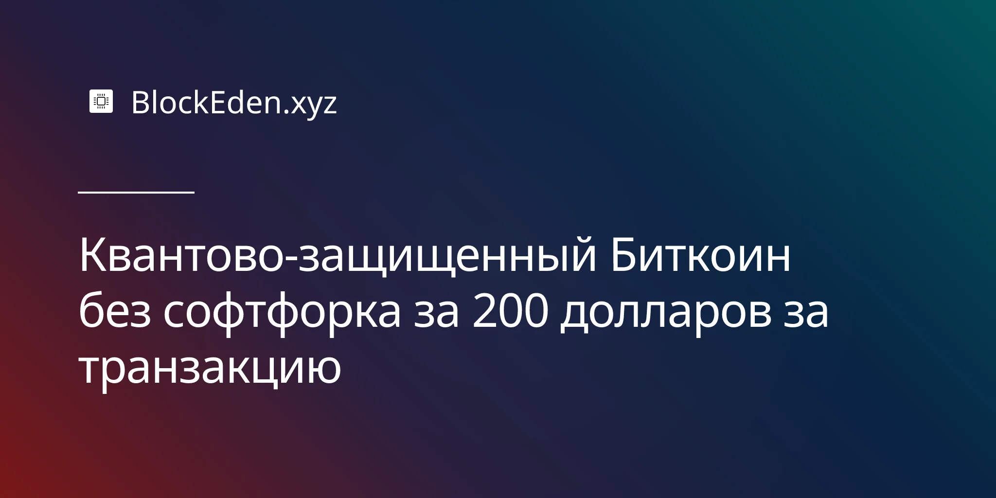 Квантово-защищенный Биткоин без софтфорка за 200 долларов за транзакцию