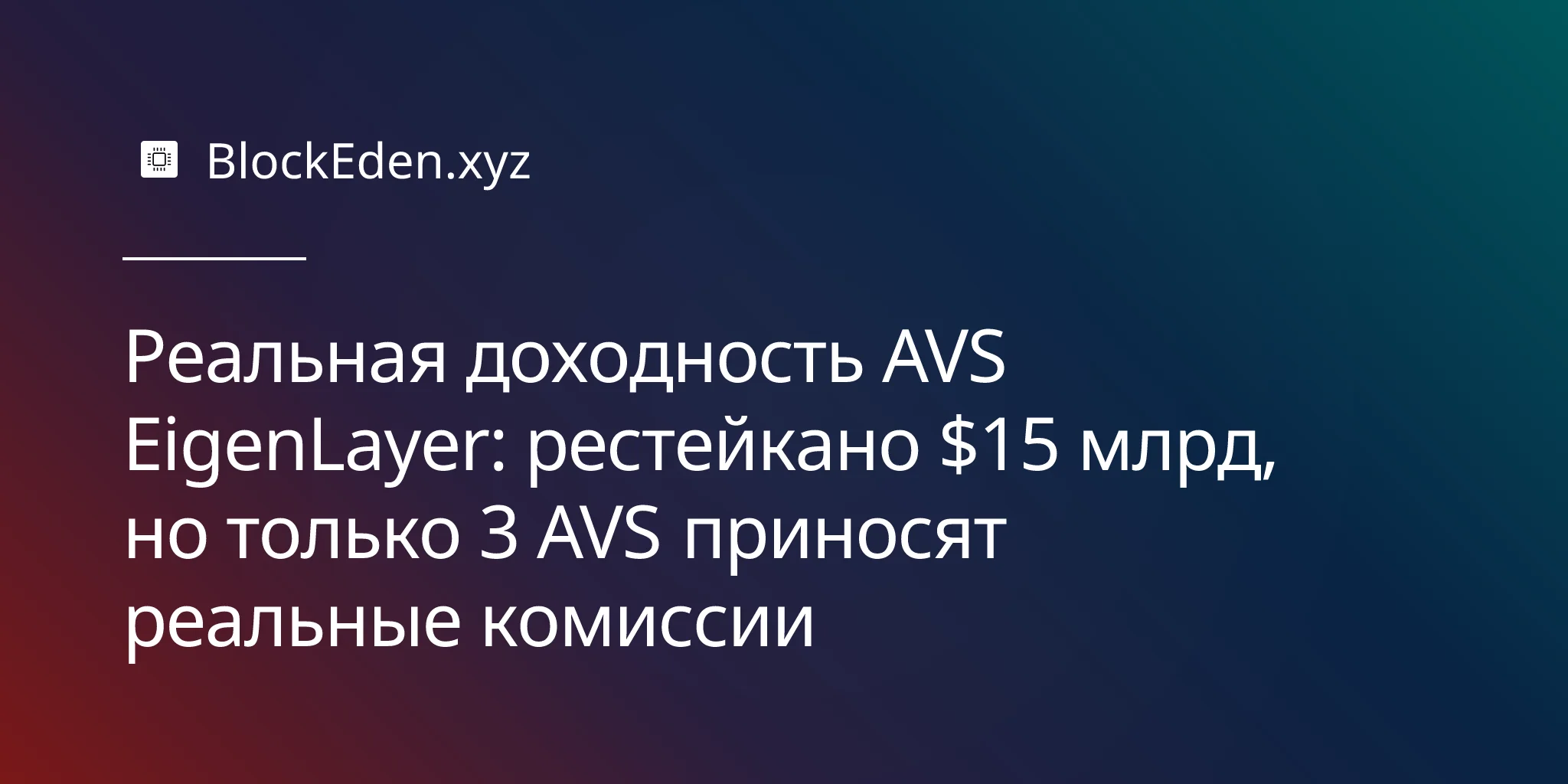 Реальная доходность AVS EigenLayer: рестейкано $15 млрд, но только 3 AVS приносят реальные комиссии