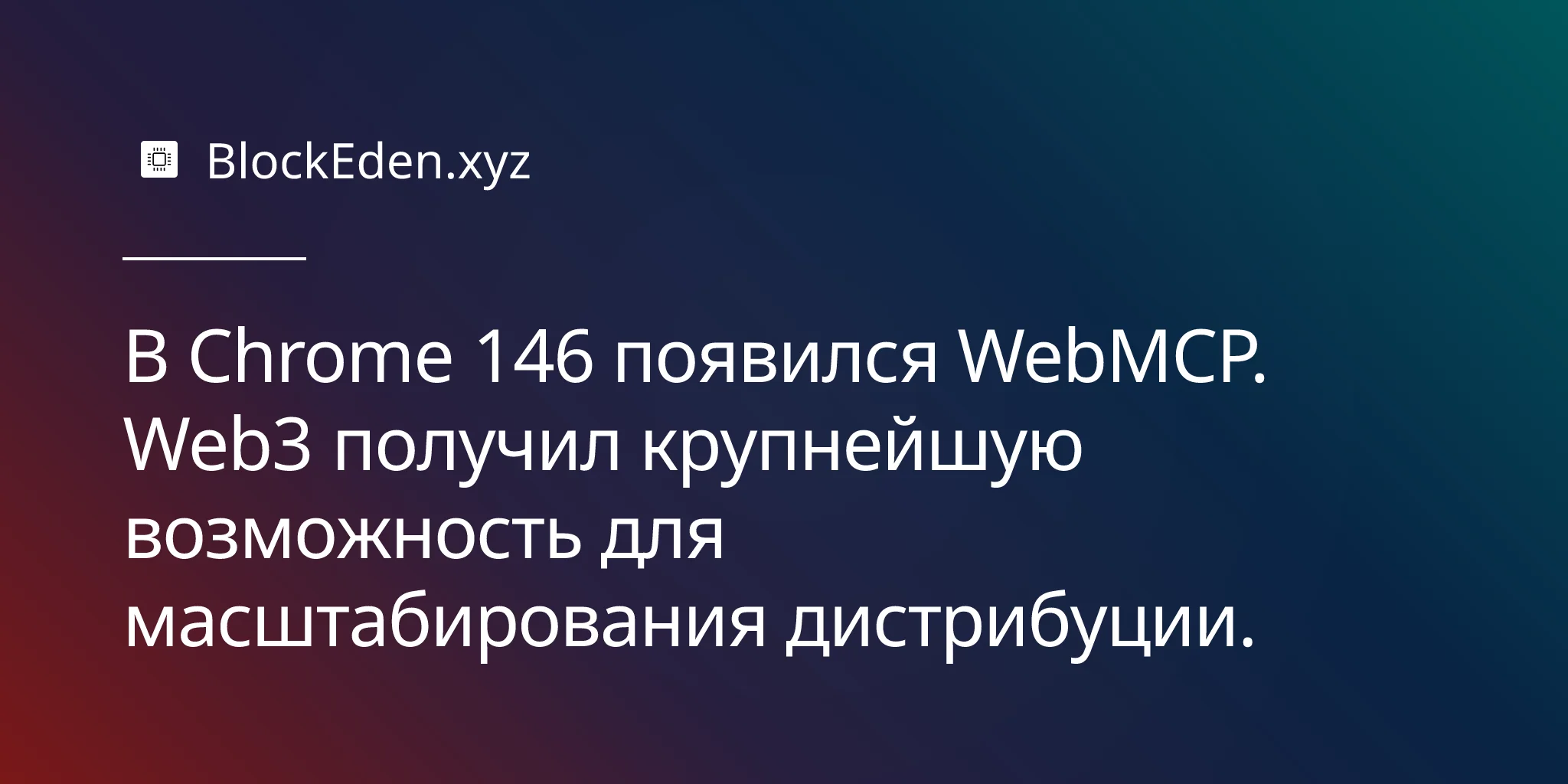 В Chrome 146 появился WebMCP. Web3 получил крупнейшую возможность для масштабирования дистрибуции.