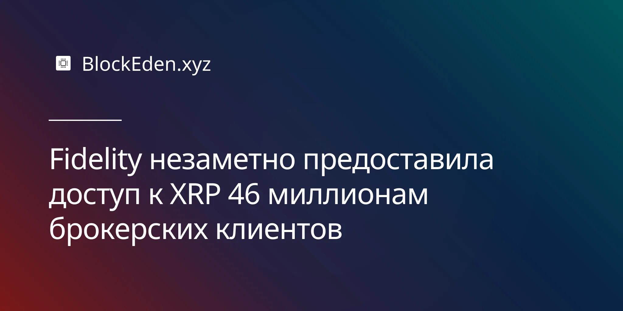 В понедельник утром в апреле 2026 года короткая операционная заметка из трех строк от команды Fidelity по администрированию индексов сделала для институционального будущего XRP больше, чем пять лет судебных драм. Компания добавила XRP в свой Индекс цифровых товаров (Digital Commodity Index). Никаких пресс-релизов. Никаких вечеринок в честь запуска токена. Просто изменение состава индекса, которое теперь направляет косвенный доступ к Ripple через 46 миллионов брокерских счетов Fidelity и консультационную сеть с активами на сумму 4,9 триллиона долларов, чьи модельные портфели автоматически ребалансируются в индексируемые активы без единого шага человеческого одобрения.