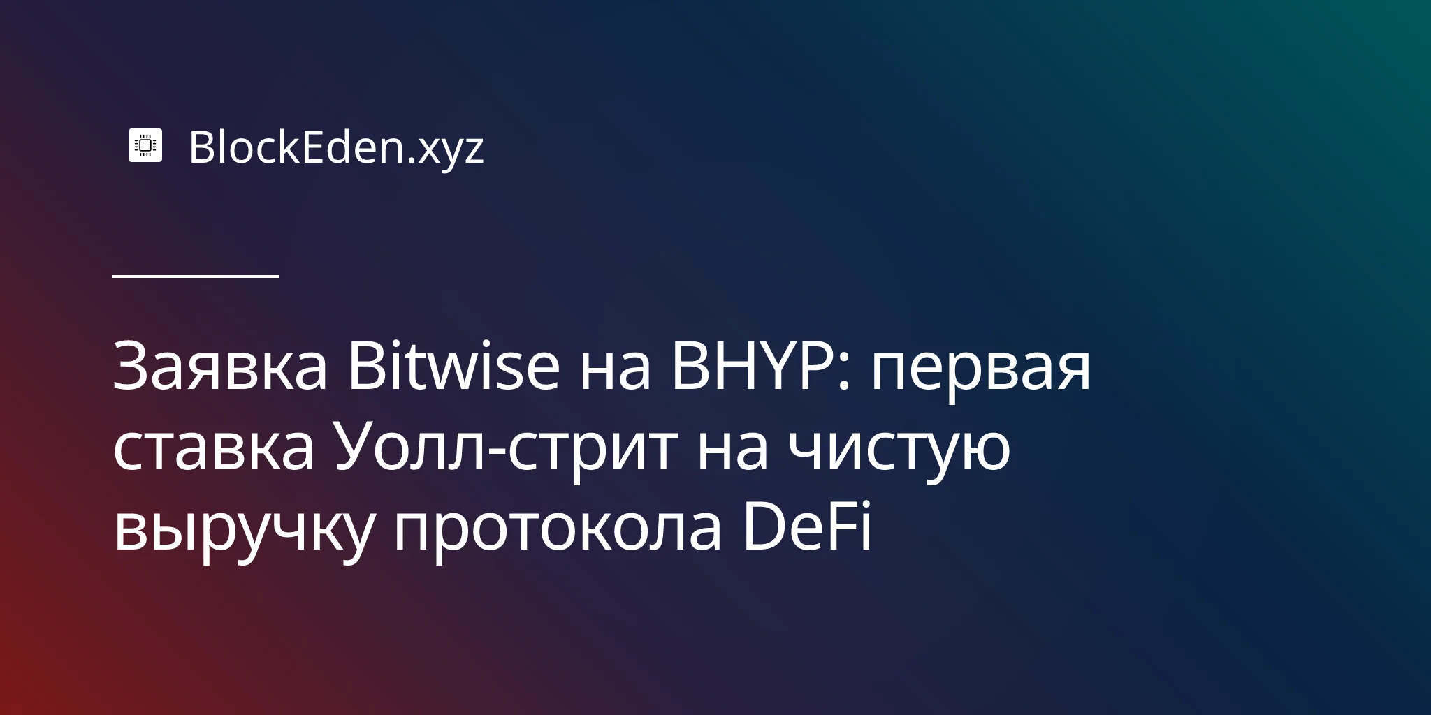 Заявка Bitwise на BHYP: первая ставка Уолл-стрит на чистую выручку протокола DeFi