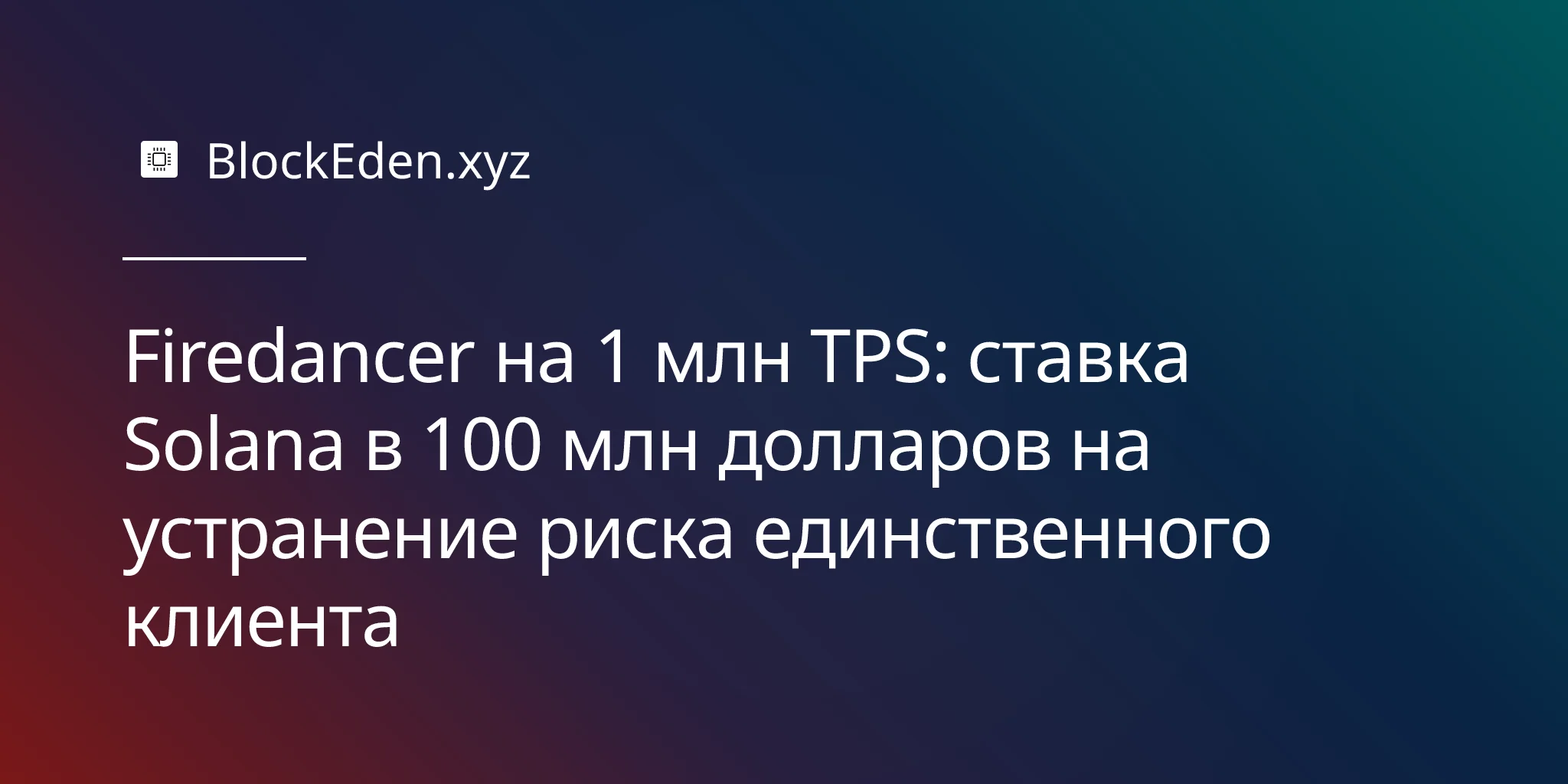 Firedancer на 1 млн TPS: ставка Solana в 100 млн долларов на устранение риска единственного клиента