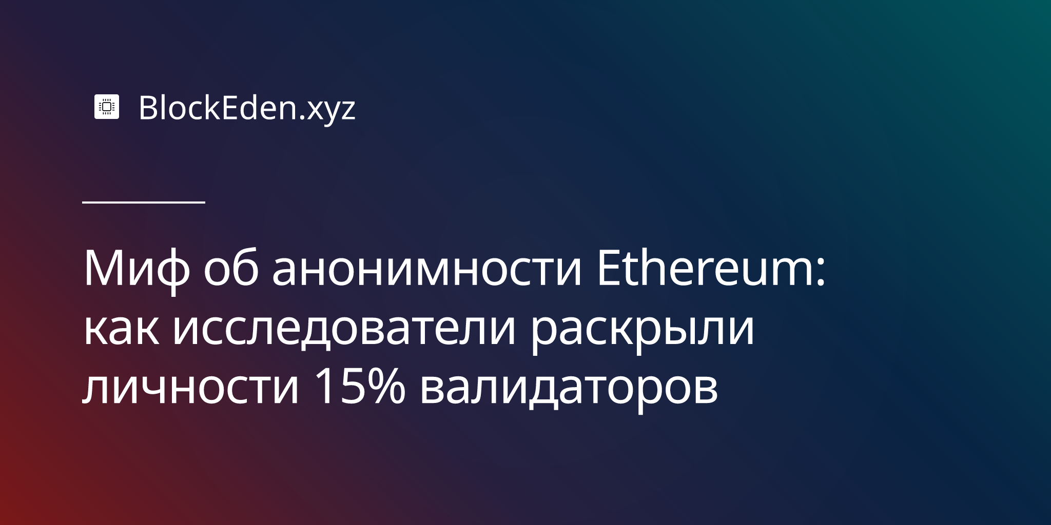 Миф об анонимности Ethereum: как исследователи раскрыли личности 15% валидаторов