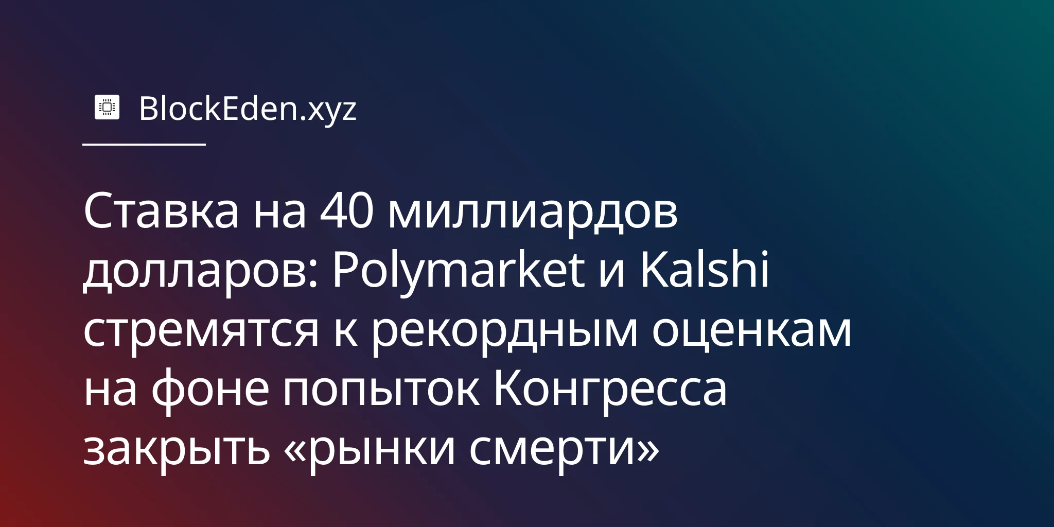 Вызов, стоящий перед индустрией, носит экзистенциальный, а не операционный характер. Polymarket и Kalshi должны убедить регуляторов и общественность в том, что рынки предсказаний могут быть «рынками информации», как их описывают сторонники, не превращаясь в «рынки смерти», которых боятся критики. При совокупной целевой оценке в 40 миллиардов долларов ставки никогда не были так высоки.