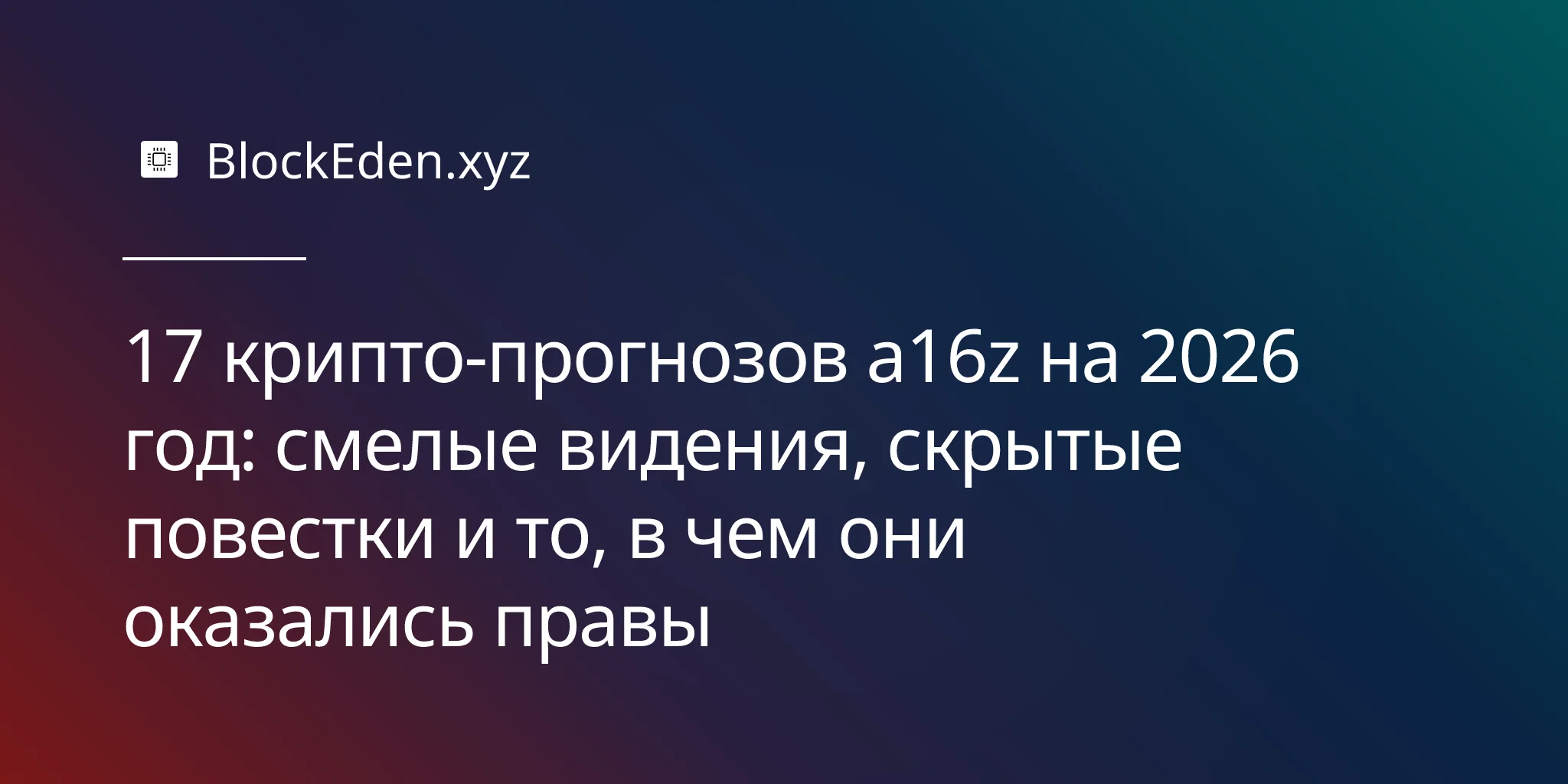 Когда крупнейшая в мире венчурная компания, ориентированная на криптосферу, публикует свои ежегодные прогнозы, индустрия прислушивается. Но стоит ли верить всему, что Andreessen Horowitz говорит о 2026 годе?