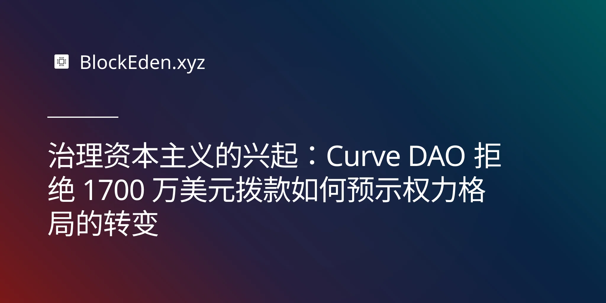 治理资本主义的兴起:Curve DAO 拒绝 1700 万美元拨款如何预示权力格局的转变
