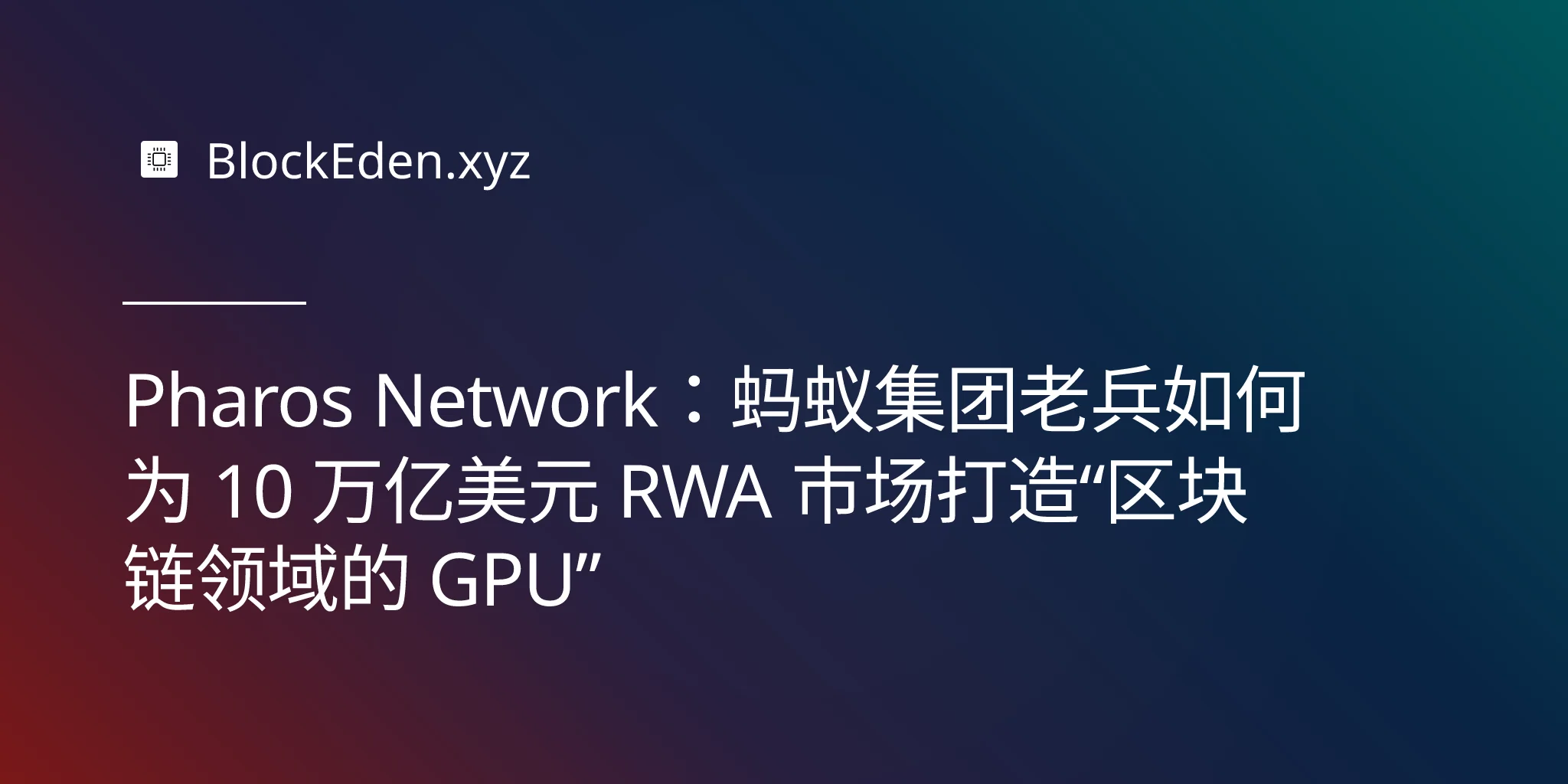 Pharos Network:蚂蚁集团老兵如何为 10 万亿美元 RWA 市场打造“区块链领域的 GPU”