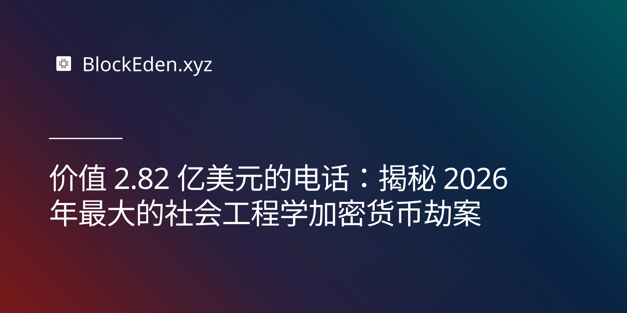 价值 2.82 亿美元的电话:揭秘 2026 年最大的社会工程学加密货币劫案