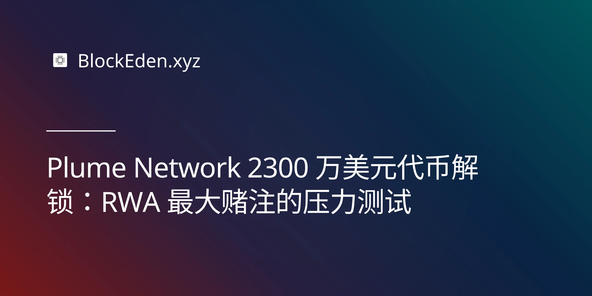 Plume Network 2300 万美元代币解锁:RWA 最大赌注的压力测试