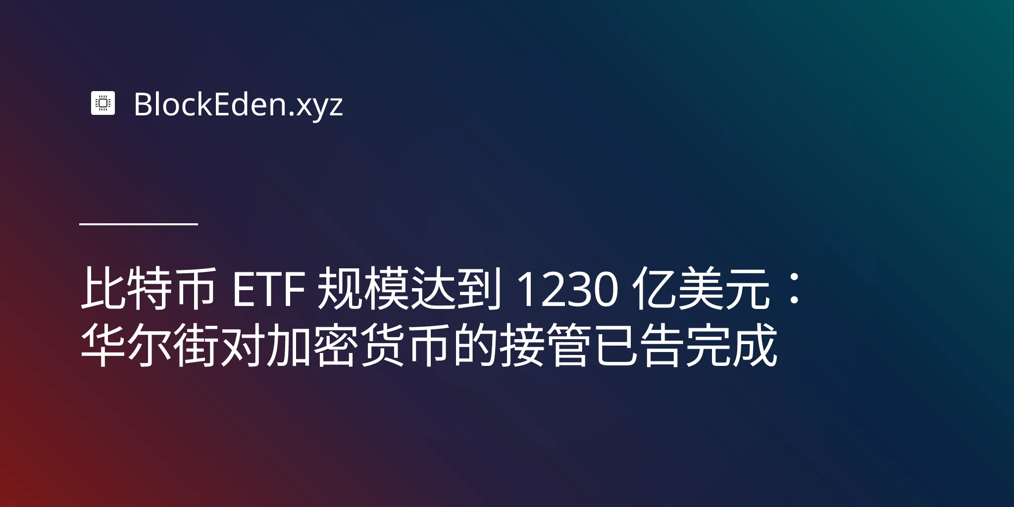 比特币 ETF 规模达到 1230 亿美元:华尔街对加密货币的接管已告完成