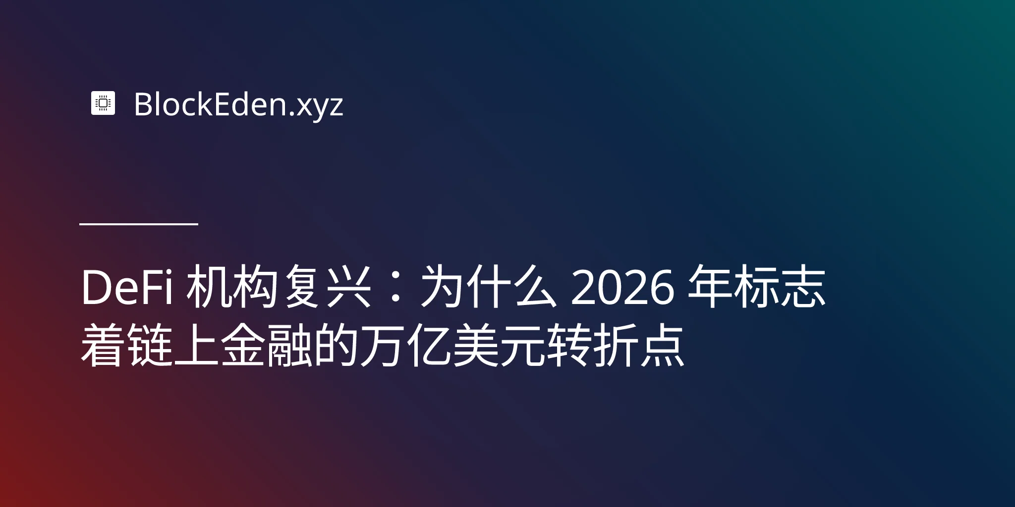 DeFi 机构复兴:为什么 2026 年标志着链上金融的万亿美元转折点
