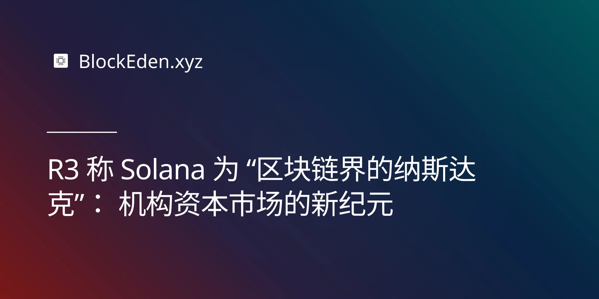 R3 称 Solana 为 “区块链界的纳斯达克”: 机构资本市场的新纪元
