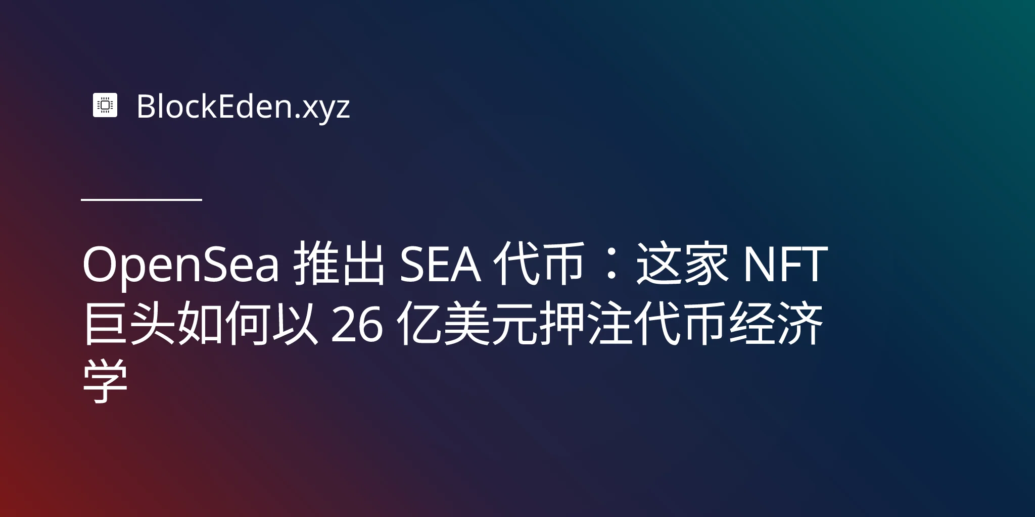 OpenSea 推出 SEA 代币:这家 NFT 巨头如何以 26 亿美元押注代币经济学