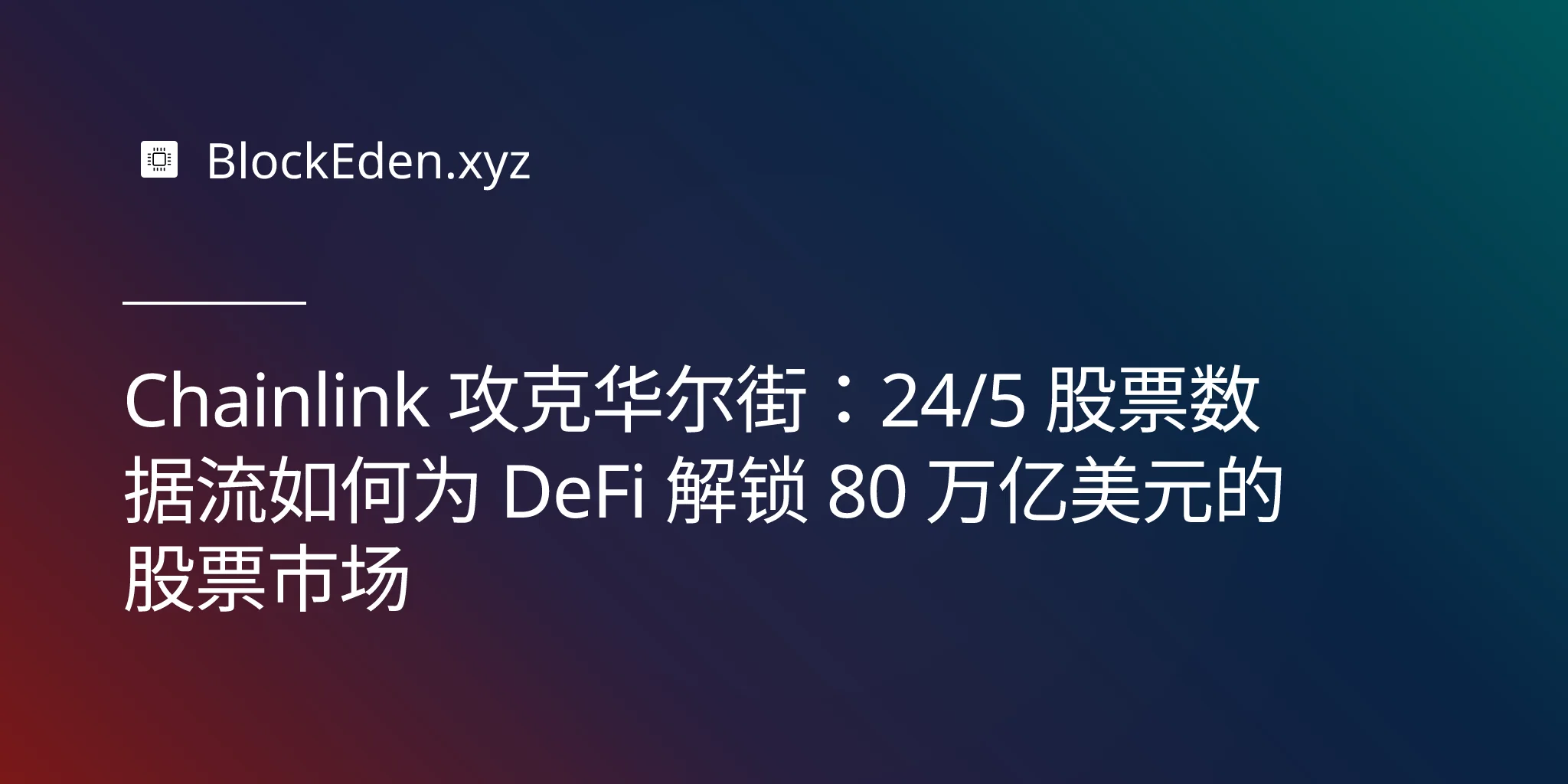 Chainlink 攻克华尔街:24/5 股票数据流如何为 DeFi 解锁 80 万亿美元的股票市场