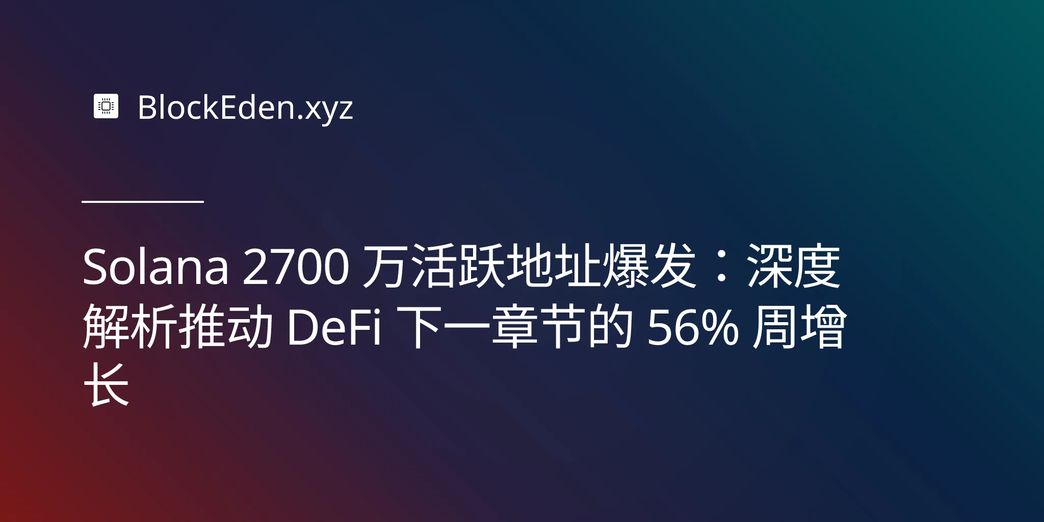 Solana 2700 万活跃地址爆发:深度解析推动 DeFi 下一章节的 56% 周增长