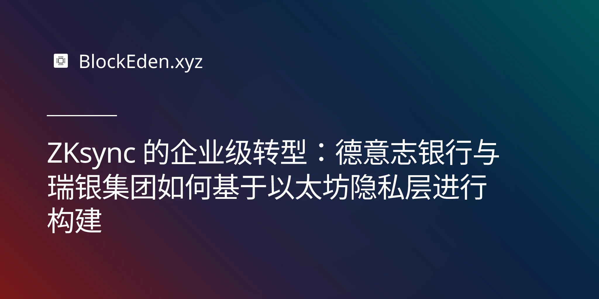 ZKsync 的企业级转型:德意志银行与瑞银集团如何基于以太坊隐私层进行构建