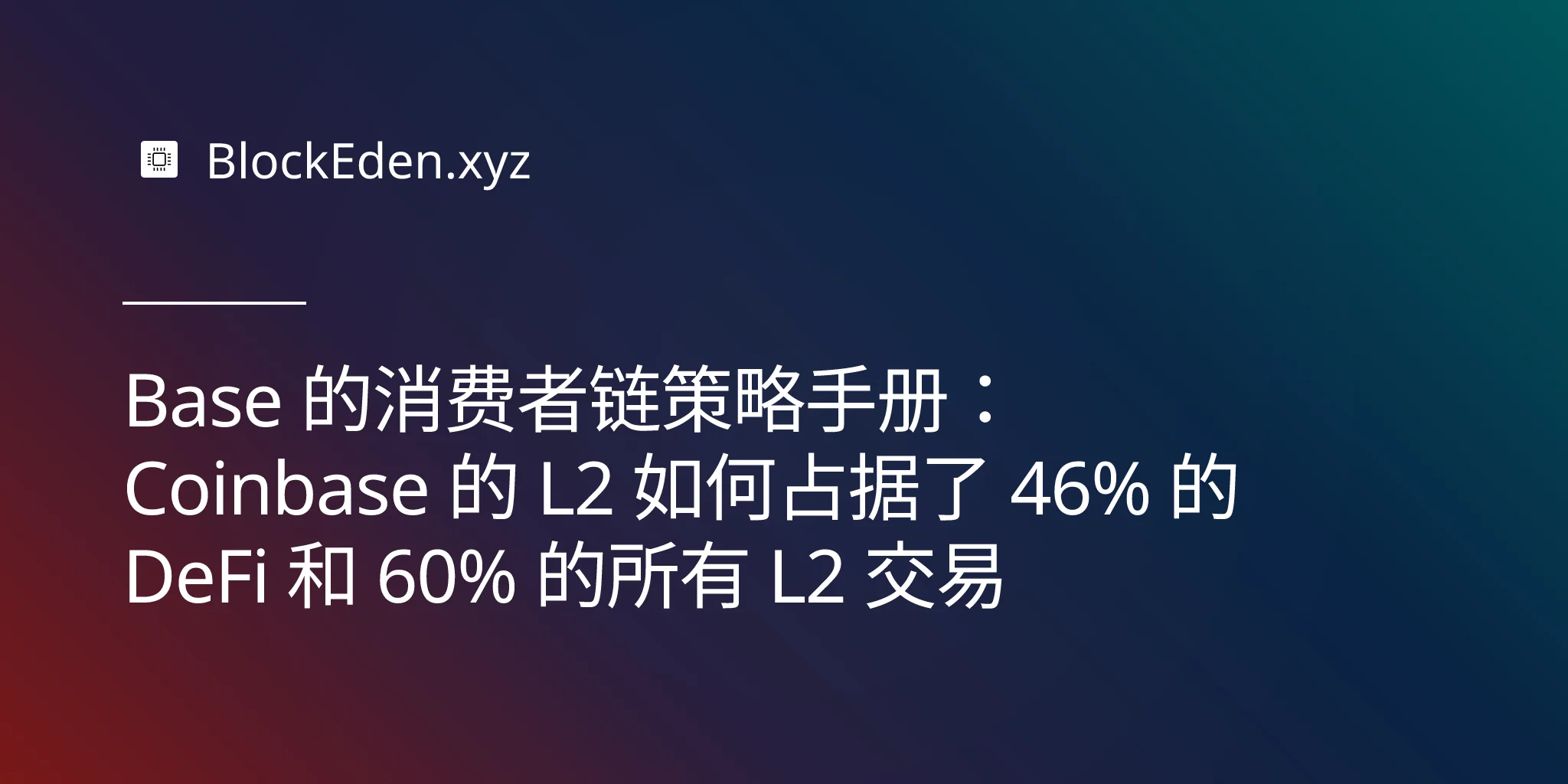 Base 的消费者链策略手册:Coinbase 的 L2 如何占据了 46% 的 DeFi 和 60% 的所有 L2 交易