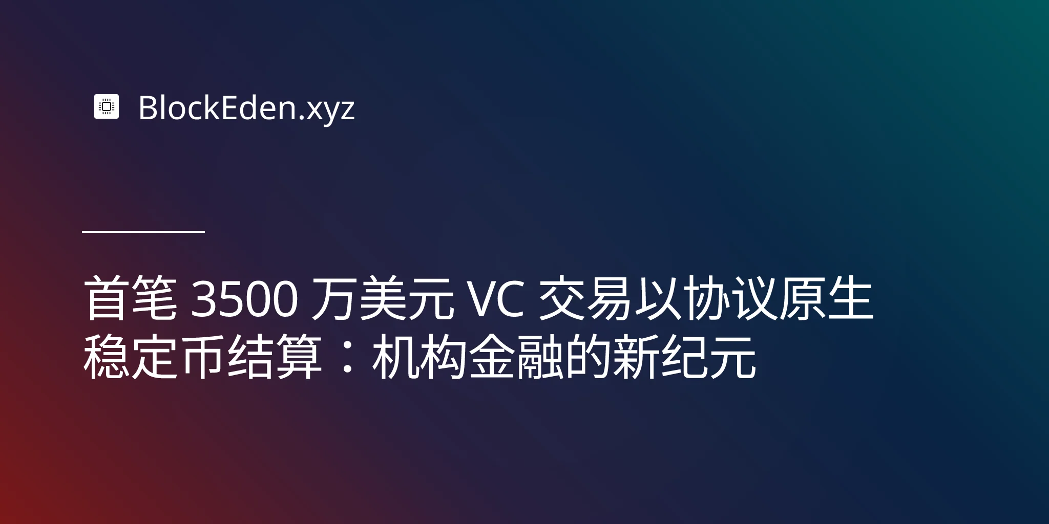 首笔 3500 万美元 VC 交易以协议原生稳定币结算:机构金融的新纪元