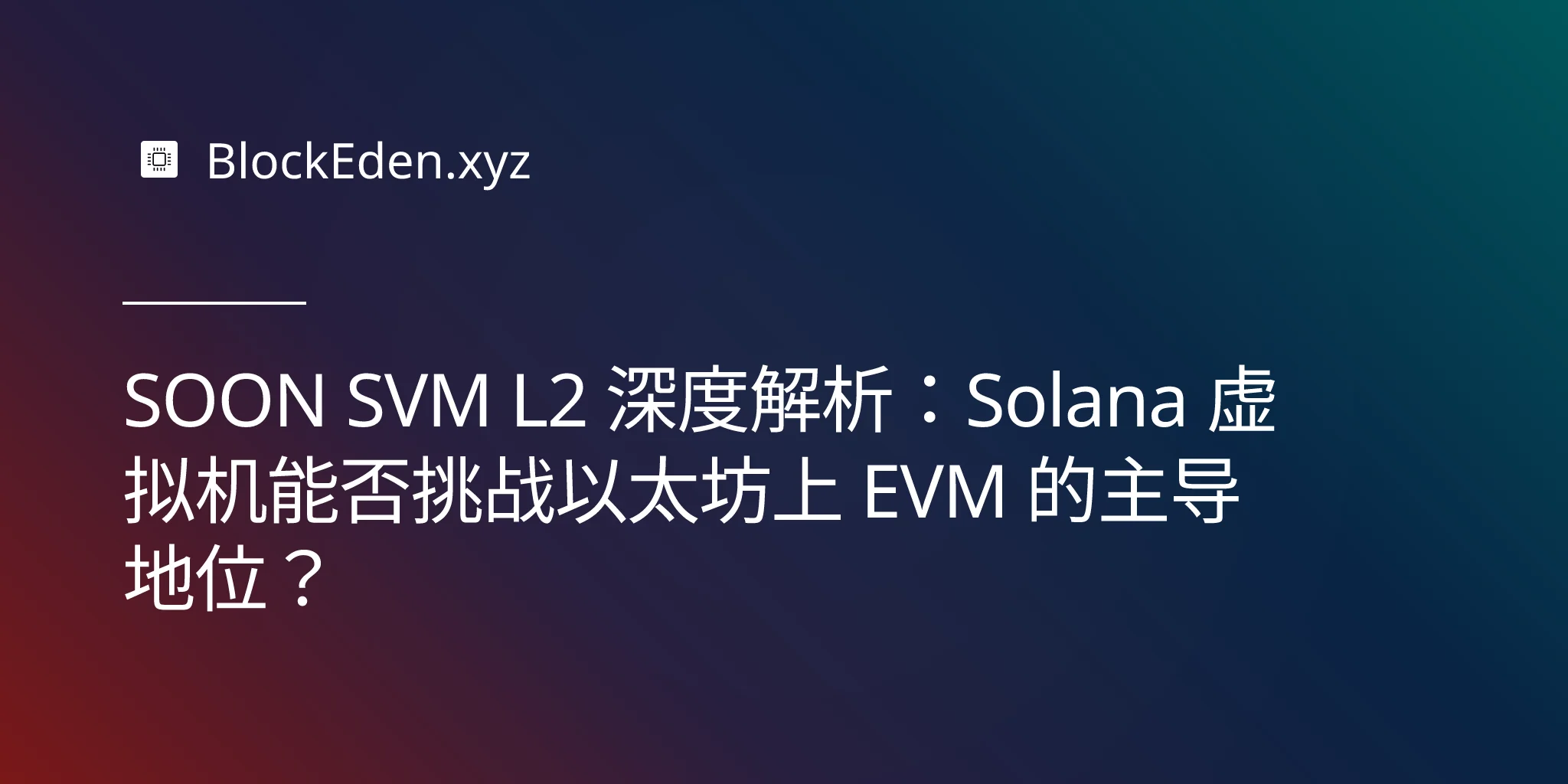 SOON SVM L2 深度解析:Solana 虚拟机能否挑战以太坊上 EVM 的主导地位?