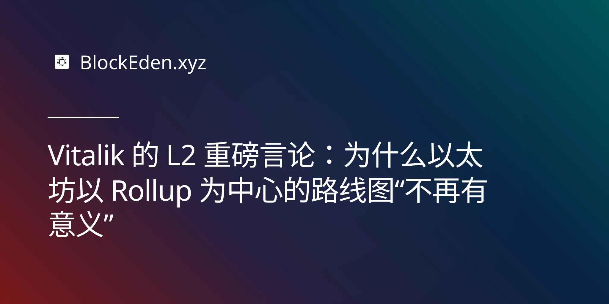 Vitalik 的 L2 重磅言论:为什么以太坊以 Rollup 为中心的路线图“不再有意义”
