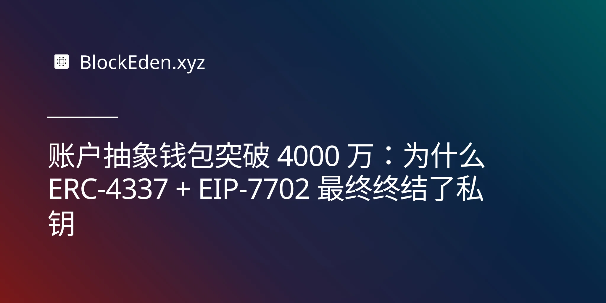 账户抽象钱包突破 4000 万:为什么 ERC-4337 + EIP-7702 最终终结了私钥