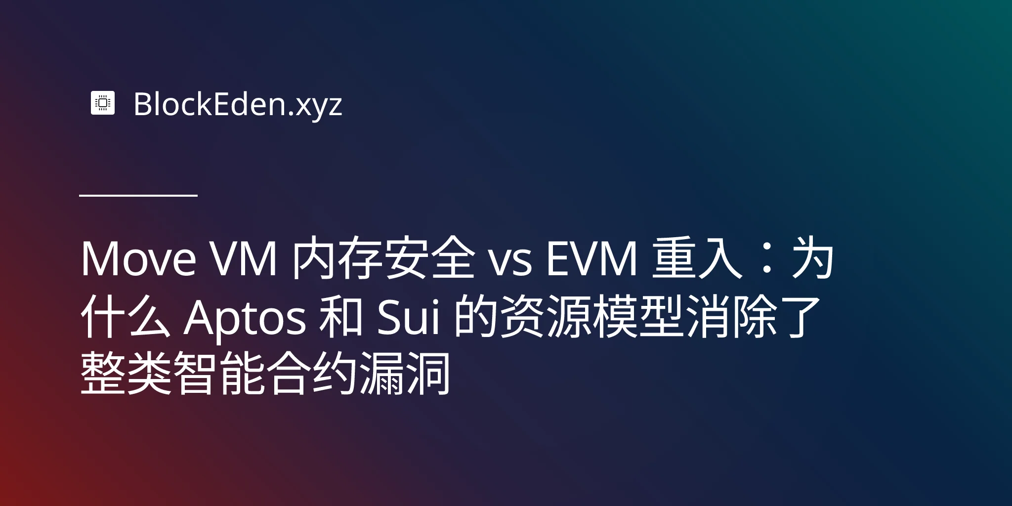Move VM 内存安全 vs EVM 重入:为什么 Aptos 和 Sui 的资源模型消除了整类智能合约漏洞