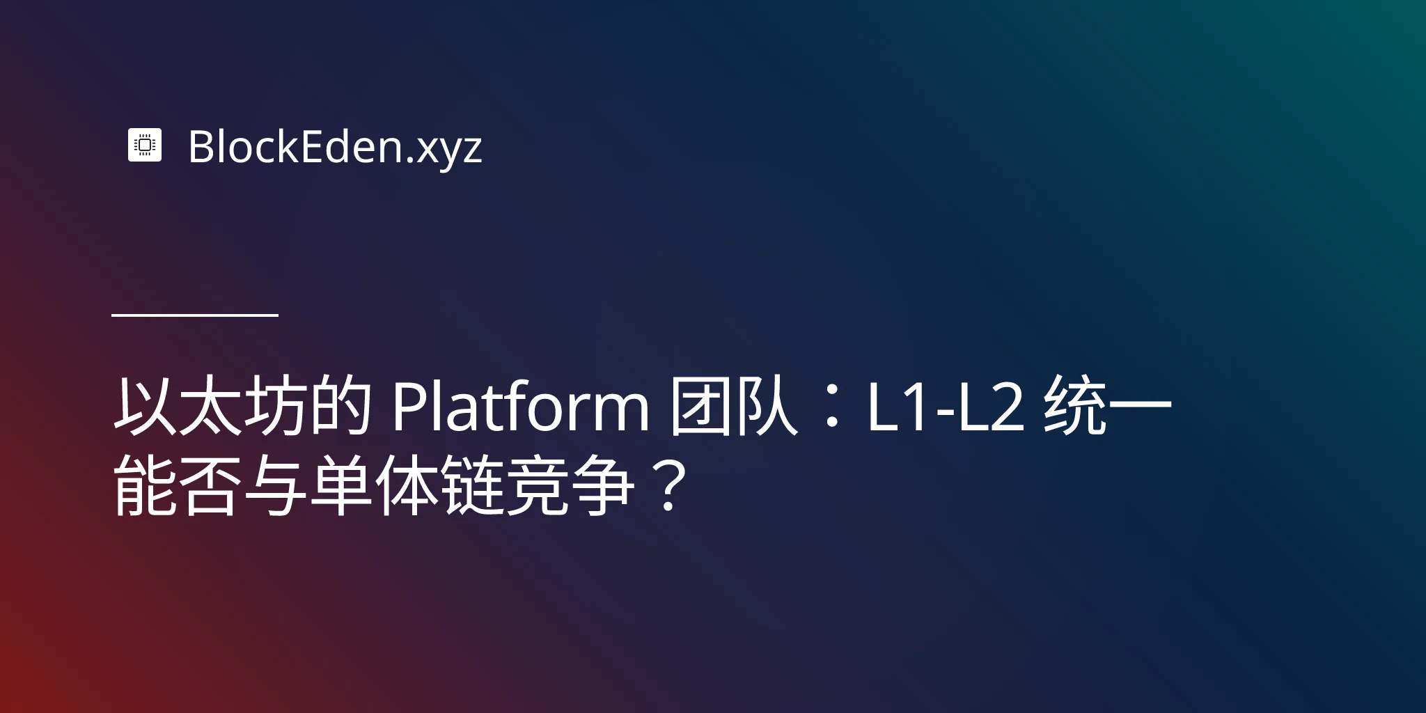 以太坊的 Platform 团队:L1-L2 统一能否与单体链竞争?