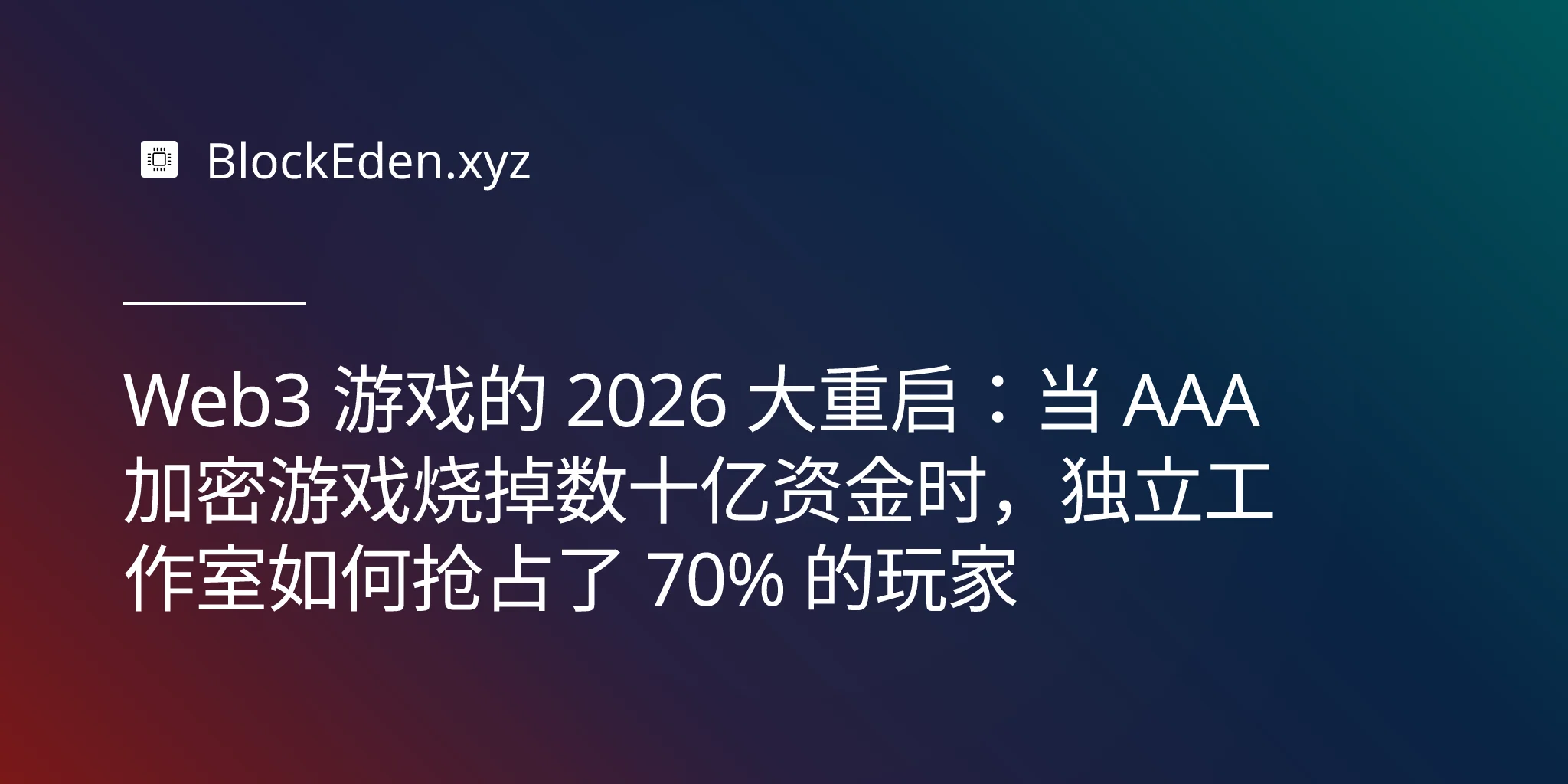 Web3 游戏的 2026 大重启:当 AAA 加密游戏烧掉数十亿资金时,独立工作室如何抢占了 70% 的玩家