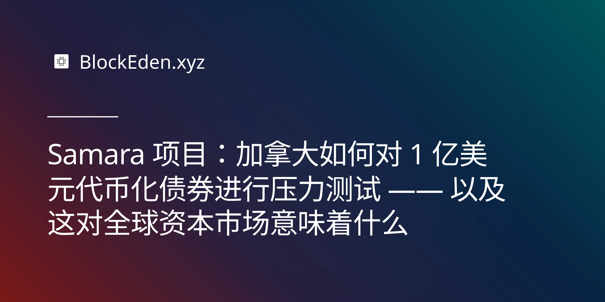 Samara 项目:加拿大如何对 1 亿美元代币化债券进行压力测试 —— 以及这对全球资本市场意味着什么