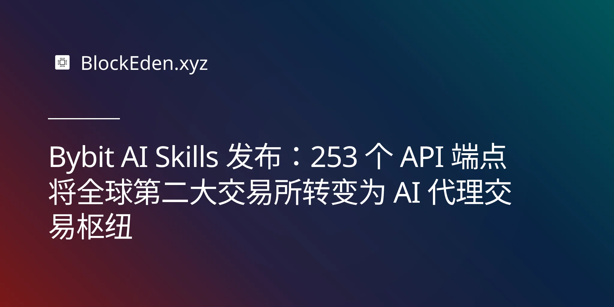 Bybit AI Skills 发布:253 个 API 端点将全球第二大交易所转变为 AI 代理交易枢纽
