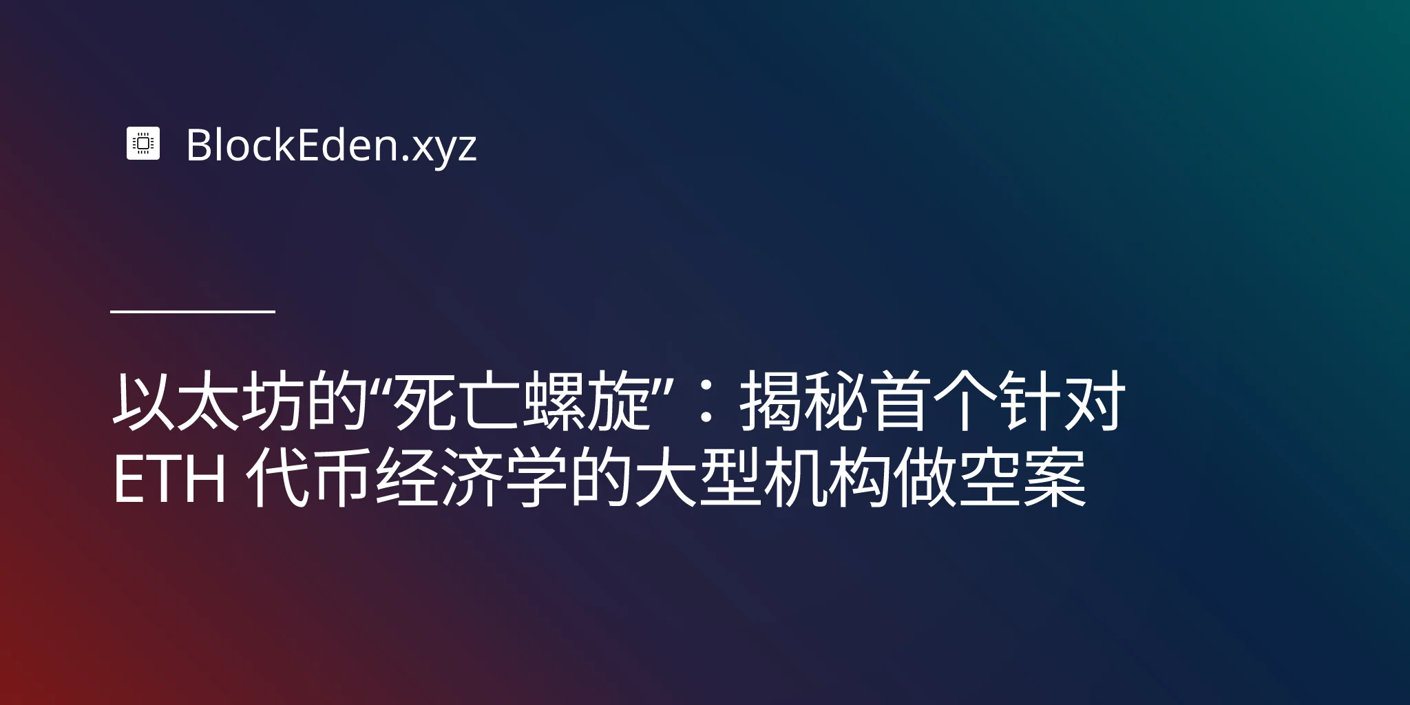 以太坊的“死亡螺旋”:揭秘首个针对 ETH 代币经济学的大型机构做空案