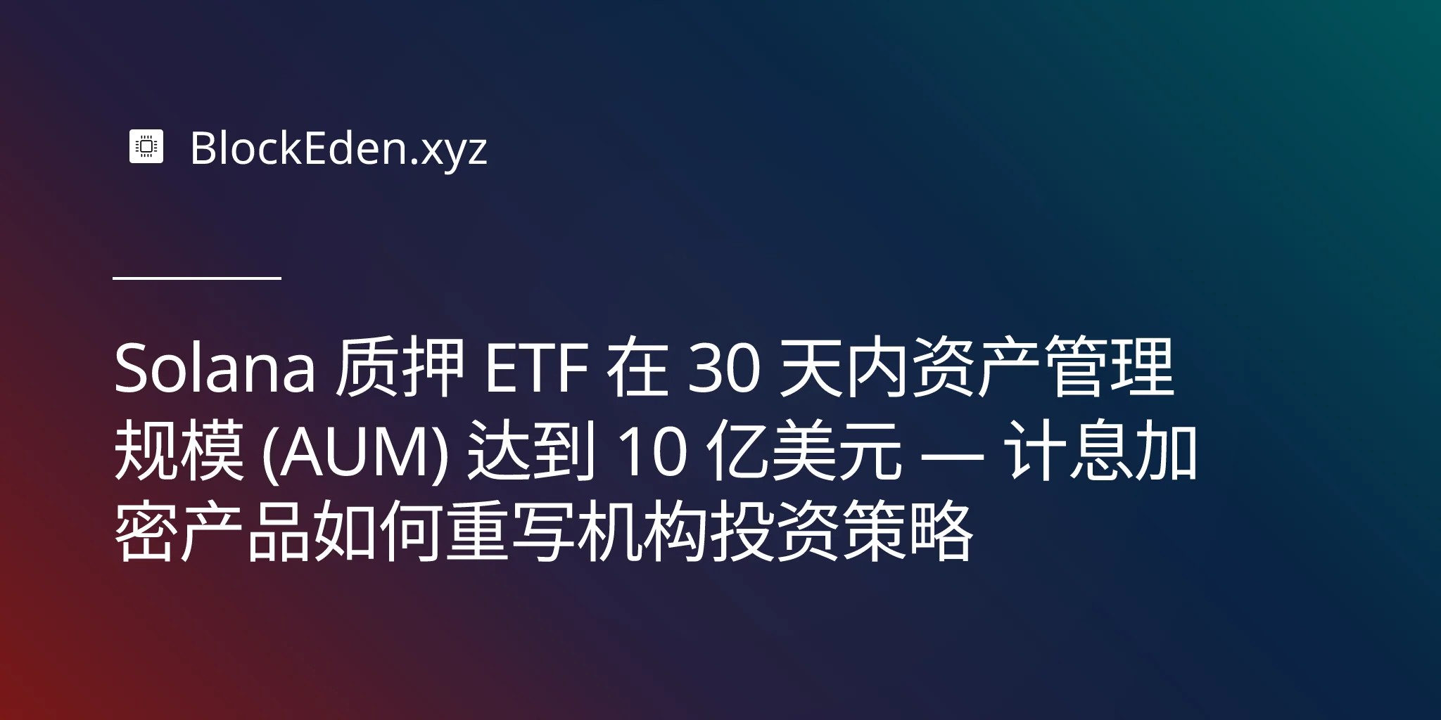 Solana 质押 ETF 在 30 天内资产管理规模 (AUM) 达到 10 亿美元 — 计息加密产品如何重写机构投资策略