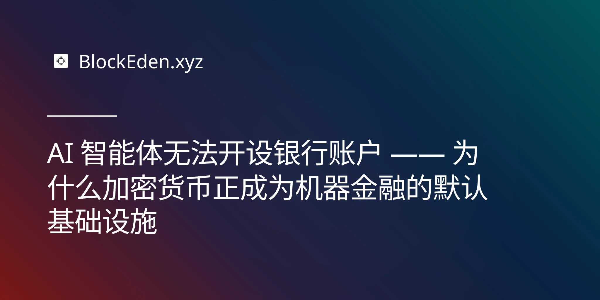 AI 智能体无法开设银行账户 —— 为什么加密货币正成为机器金融的默认基础设施