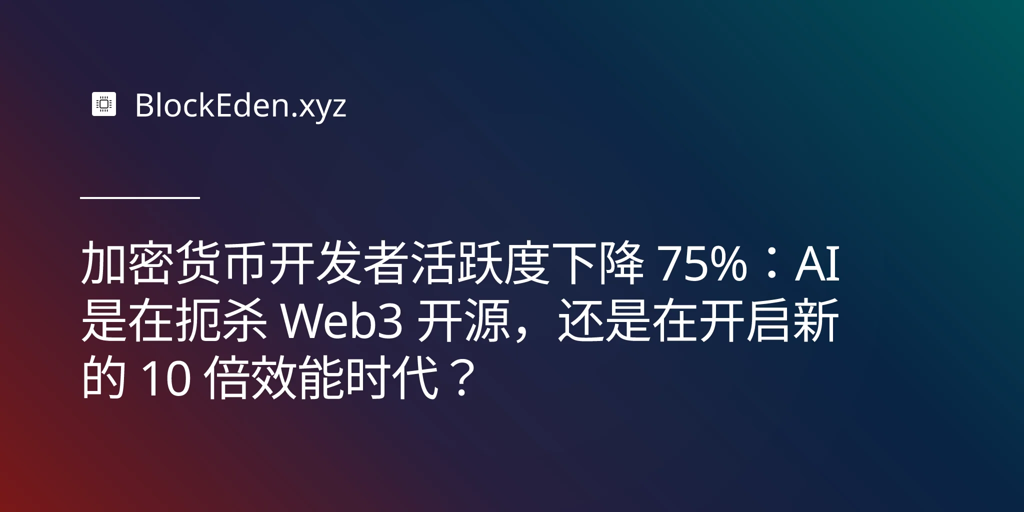 加密货币开发者活跃度下降 75%:AI 是在扼杀 Web3 开源,还是在开启新的 10 倍效能时代?